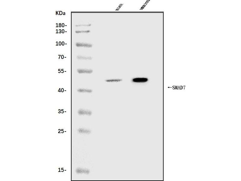 Background: Mothers against decapentaplegic homolog 7 or SMAD7 is a protein that in humans is encoded by the SMAD7 gene. The protein encoded by this gene is a nuclear protein that binds the E3 ubiquitin ligase SMURF2. Upon binding, this complex translocates to the cytoplasm, where it interacts with TGF-beta receptor type-1 (TGFBR1), leading to the degradation of both the encoded protein and TGFBR1. Expression of this gene is induced by TGFBR1. Variations in this gene are a cause of susceptibility to colorectal cancer type 3 (CRCS3). Several transcript variants encoding different isoforms have been found for this gene.
