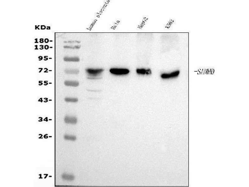 - Anti-SAMHD1 Antibody (monoclonal, 10H8) (ABIN7601514). Tested in Flow Cytometry, IF, IHC, ICC, WB applications. This antibody reacts with Human. This is a premium antibody that guarantees superior quality, high affinity, and strong signals with minimal background in Western blot applications.