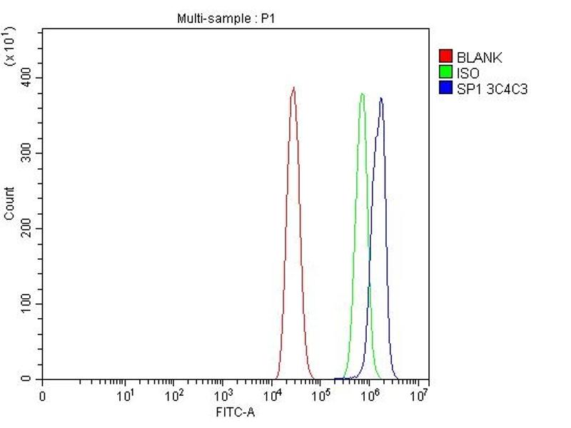 - Anti-SP1 Antibody (monoclonal, 3C4C3) (ABIN7601559). Tested in Flow Cytometry, IF, ICC, IHC, WB applications. This antibody reacts with Human. This is a premium antibody that guarantees superior quality, high affinity, and strong signals with minimal background in Western blot applications.