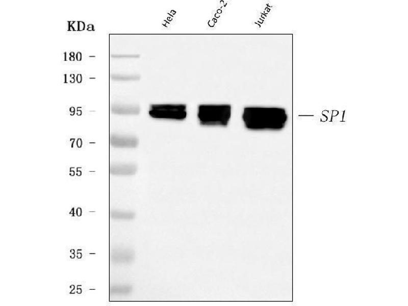 Background: Transcription factor Sp1, also known as specificity protein 1* is a protein that in humans is encoded by the SP1 gene. The protein encoded by this gene is a zinc finger transcription factor that binds to GC-rich motifs of many promoters. The encoded protein is involved in many cellular processes, including cell differentiation, cell growth, apoptosis, immune responses, response to DNA damage, and chromatin remodeling. Post-translational modifications such as phosphorylation, acetylation, glycosylation, and proteolytic processing significantly affect the activity of this protein, which can be an activator or a repressor. Three transcript variants encoding different isoforms have been found for this gene.