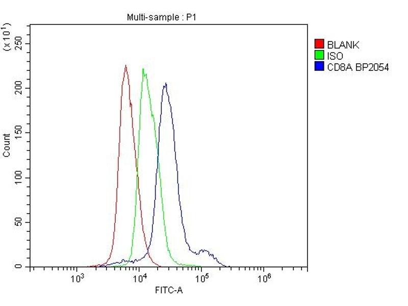 Background: The CD8 antigen is a cell surface glycoprotein found on most cytotoxic T lymphocytes that mediates efficient cell-cell interactions within the immune system. It is mapped to 2p11.2. The CD8 antigen, acting as a coreceptor, and the T-cell receptor on the T lymphocyte recognize antigen displayed by an antigen presenting cell (APC) in the context of class I MHC molecules. The functional coreceptor is either a homodimer composed of two alpha chains, or a heterodimer composed of one alpha and one beta chain. Both alpha and beta chains share significant homology to immunoglobulin variable light chains. This gene also encodes the CD8 alpha chain isoforms.