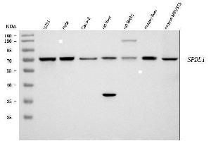 - Anti-Spindly/SPDL1 Antibody (ABIN7601654). Tested in ELISA, Flow Cytometry, IF, ICC, WB applications. This antibody reacts with Human, Mouse, Rat. This is a premium antibody that guarantees superior quality, high affinity, and strong signals with minimal background in Western blot applications.