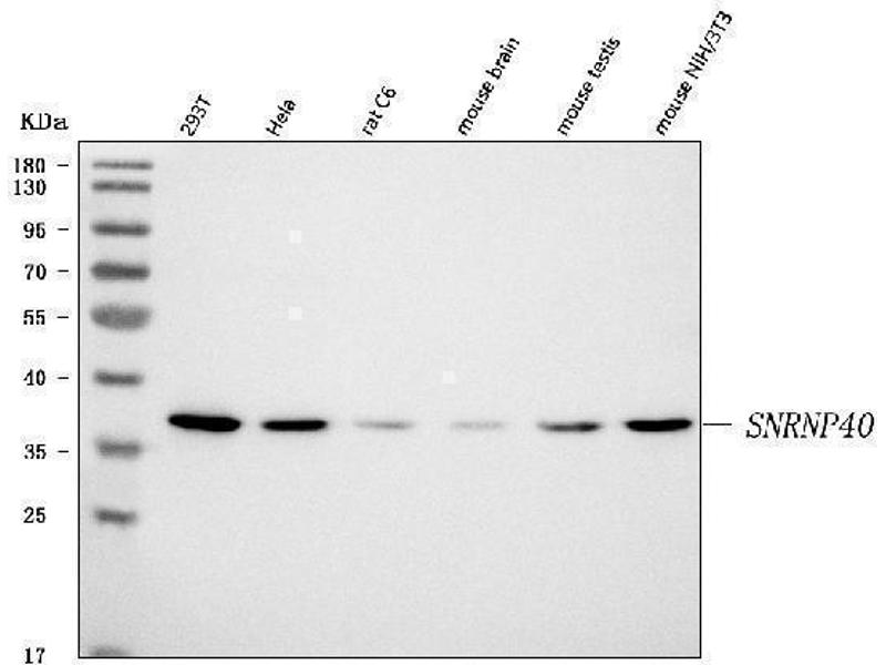 - Anti-SNRNP40 Antibody (ABIN7601719). Tested in ELISA, Flow Cytometry, IF, IHC, ICC, WB applications. This antibody reacts with Human, Mouse, Rat. This is a premium antibody that guarantees superior quality, high affinity, and strong signals with minimal background in Western blot applications.