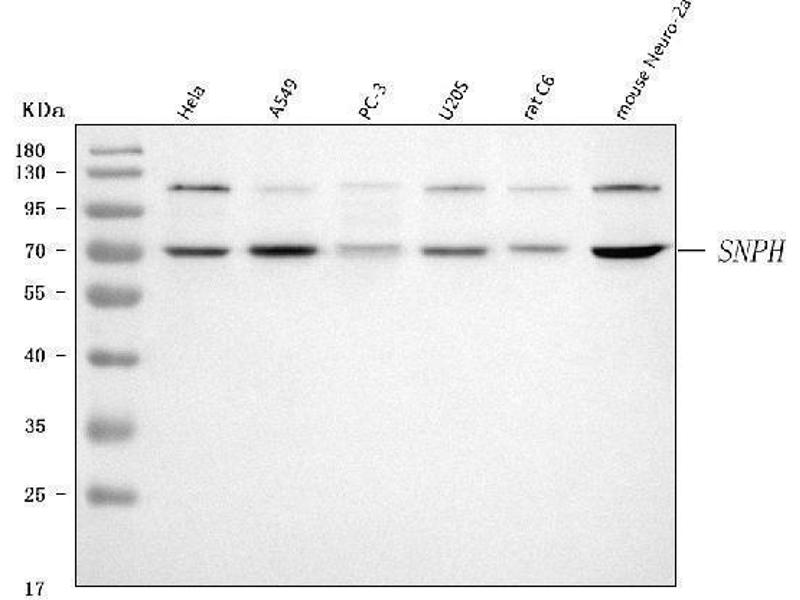 - Anti-SNPH Antibody (ABIN7601724). Tested in ELISA, IHC, WB applications. This antibody reacts with Human, Mouse, Rat. This is a premium antibody that guarantees superior quality, high affinity, and strong signals with minimal background in Western blot applications.