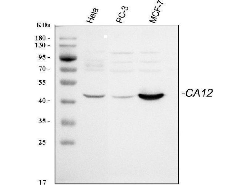 - Anti-CA12 Antibody (ABIN7601765). Tested in ELISA, WB applications. This antibody reacts with Human. This is a premium antibody that guarantees superior quality, high affinity, and strong signals with minimal background in Western blot applications.