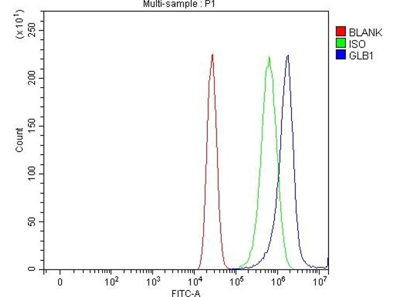 - Anti-GLB1/Beta-galactosidase Antibody (ABIN7601806). Tested in ELISA, Flow Cytometry, IF, IHC, ICC, WB applications. This antibody reacts with Human. This is a premium antibody that guarantees superior quality, high affinity, and strong signals with minimal background in Western blot applications.