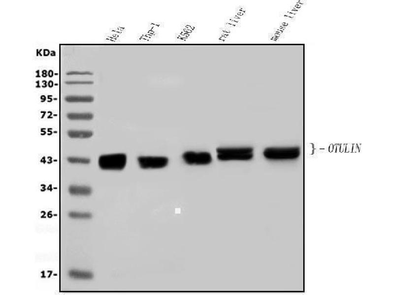 - Anti-OTULIN Antibody (ABIN7601854). Tested in ELISA, Flow Cytometry, IF, IHC, ICC, WB applications. This antibody reacts with Human, Mouse, Rat. This is a premium antibody that guarantees superior quality, high affinity, and strong signals with minimal background in Western blot applications.