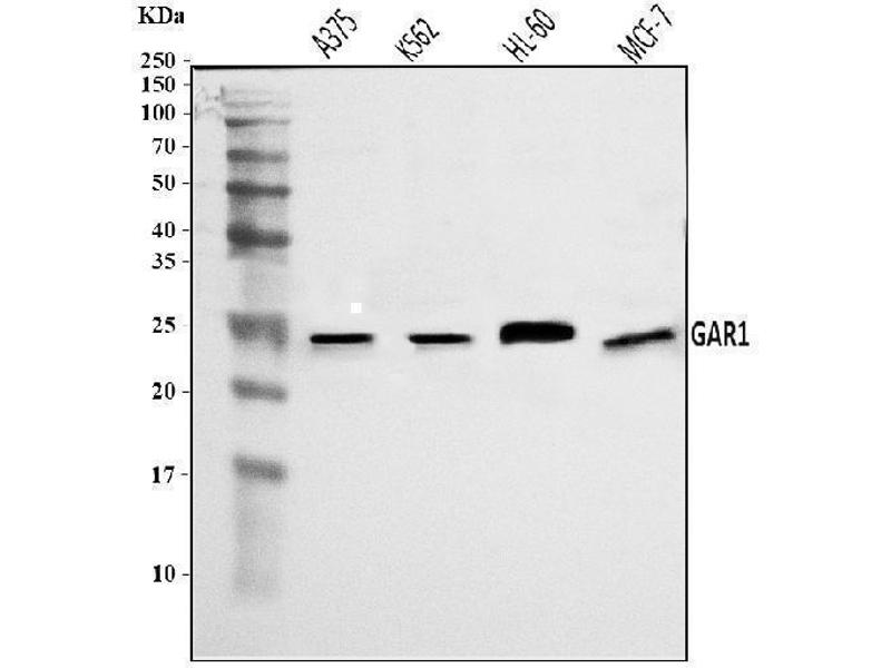 - Anti-NOLA1/GAR1 Antibody (ABIN7602076). Tested in ELISA, Flow Cytometry, IF, IHC, ICC, WB applications. This antibody reacts with Human. This is a premium antibody that guarantees superior quality, high affinity, and strong signals with minimal background in Western blot applications.