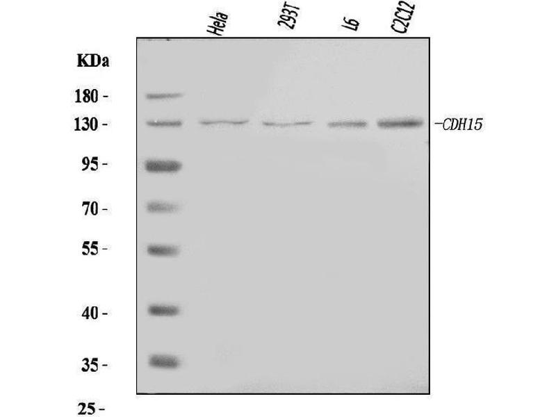 - Anti-M Cadherin/CDH15 Antibody (ABIN7602173). Tested in ELISA, Flow Cytometry, IHC, WB applications. This antibody reacts with Human, Mouse, Rat. This is a premium antibody that guarantees superior quality, high affinity, and strong signals with minimal background in Western blot applications.
