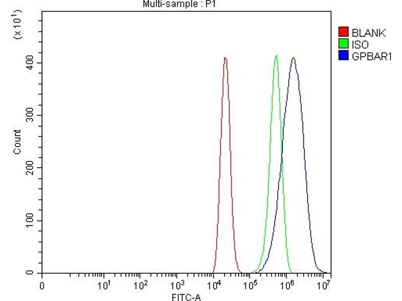 Background: The G protein-coupled bile acid receptor 1 (GPBAR1) also known G-protein coupled receptor 19 (GPCR19), membrane-type receptor for bile acids (M-BAR) or TGR5 as is a protein that in humans is encoded by the GPBAR1 gene. This gene encodes a member of the G protein-coupled receptor (GPCR) superfamily. This enzyme functions as a cell surface receptor for bile acids. Treatment of cells expressing this GPCR with bile acids induces the production of intracellular cAMP, activation of a MAP kinase signaling pathway, and internalization of the receptor. The receptor is implicated in the suppression of macrophage functions and regulation of energy homeostasis by bile acids. Alternative splicing results in multiple transcript variants encoding the same protein.