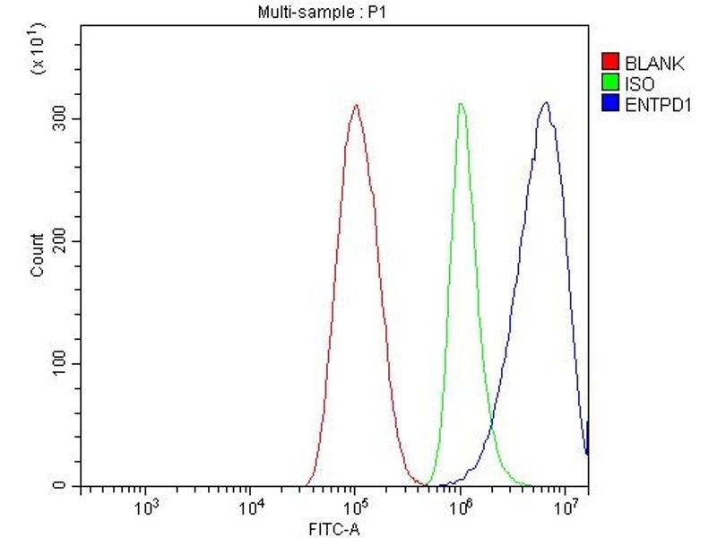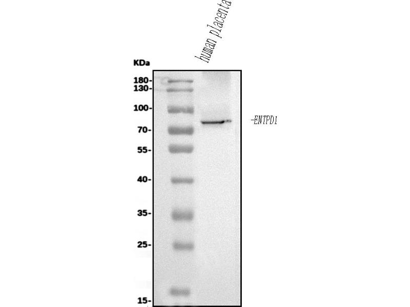 Background: Ectonucleoside triphosphate diphosphohydrolase-1 (gene: ENTPD1, protein: NTPDase1) also known as CD39 (Cluster of Differentiation 39), is a typical cell surface enzyme with a catalytic site on the extracellular face. The protein encoded by this gene is a plasma membrane protein that hydrolyzes extracellular ATP and ADP to AMP. Inhibition of this protein's activity may confer anticancer benefits. Several transcript variants encoding different isoforms have been found for this gene.