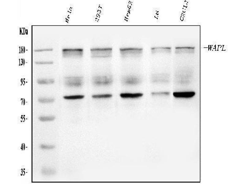 Background: WAPL (wings apart-like), also known as WAPAL or FOE, is a 1,190 amino acid protein that contains one WAPL domain and may play an important role in cell growth. It is expressed in an isoform dependent manner in heart, skeletal muscle (isoform 2) and uterine cervix tumor tissue (isoform 1). WAPL is involved in sister-chromatid adhesion and promotes release of cohesin from chromosomes by ly interacting with its regulatory subunits. WAPL is a new regulator of the development and metastasis of cancerous tissue.