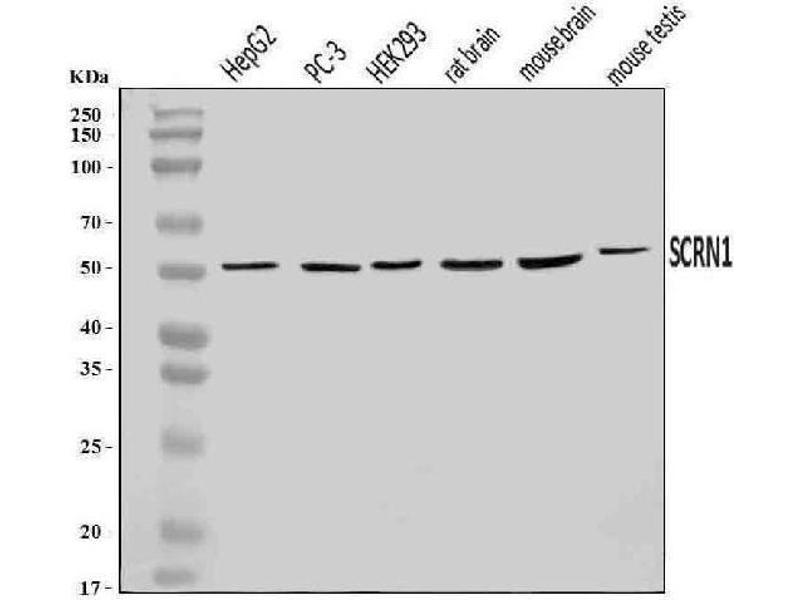 - Anti-SCRN1 Antibody (ABIN7602923). Tested in IF, IHC, ICC, WB applications. This antibody reacts with Human, Mouse, Rat. This is a premium antibody that guarantees superior quality, high affinity, and strong signals with minimal background in Western blot applications.