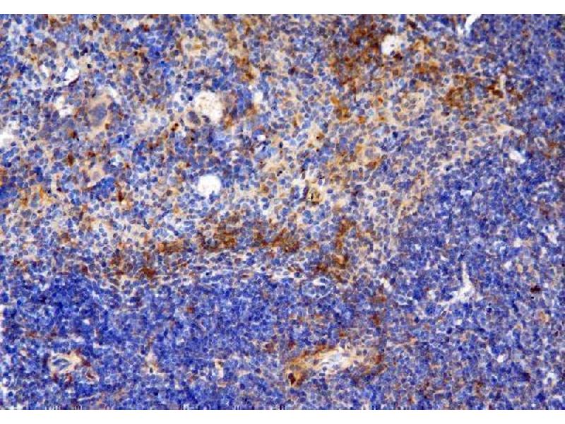Tissue Specificity: Highly expressed in spleen, thymus, in the myeloid cell line THP-1, in the promyeloblastic cell line KG-1a and on CD4+ and CD8+ T-cells. Medium levels in peripheral blood leukocytes and in small intestine. Low levels in ovary and lung.