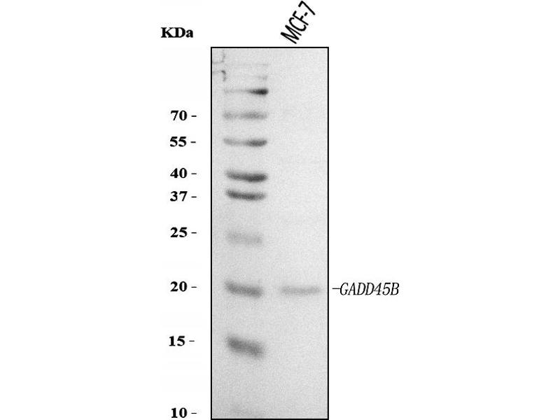 Background: Growth arrest and DNA-damage-inducible, beta, also known as GADD45B, is a protein which in humans is encoded by the GADD45B gene. This gene is a member of a group of genes whose transcript levels are increased following stressful growth arrest conditions and treatment with DNA-damaging agents. The genes in this group respond to environmental stresses by mediating activation of the p38/JNK pathway. This activation is mediated via their proteins binding and activating MTK1/MEKK4 kinase, which is an upstream activator of both p38 and JNK MAPKs. The function of these genes or their protein products is involved in the regulation of growth and apoptosis. These genes are regulated by different mechanisms, but they are often coordinately expressed and can function cooperatively in inhibiting cell growth.