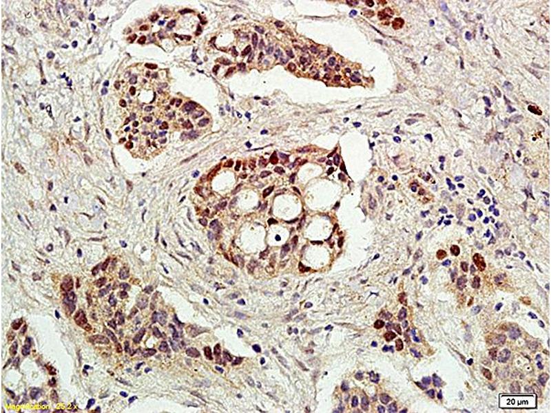 Background: Acts as a tumor suppressor in many tumor types, induces growth arrest or apoptosis depending on the physiological circumstances and cell type. Involved in cell cycle regulation as a trans-activator that acts to negatively regulate cell division by controlling a set of genes required for this process. One of the activated genes is an inhibitor of cyclin-dependent kinases. Apoptosis induction seems to be mediated either by stimulation of BAX and FAS antigen expression, or by repression of Bcl-2 expression. In cooperation with mitochondrial PPIF is involved in activating oxidative stress-induced necrosis, the function is largely independent of transcription. Induces the transcription of long intergenic non-coding RNA p21 (lincRNA-p21) and lincRNA-Mkln1. LincRNA-p21 participates in TP53-dependent transcriptional repression leading to apoptosis and seem to have to effect on cell-cycle regulation. Implicated in Notch signaling cross-over. Prevents CDK7 kinase activity when associated to CAK complex in response to DNA damage, thus stopping cell cycle progression. Isoform 2 enhances the transactivation activity of isoform 1 from some but not all TP53-inducible promoters. Isoform 4 suppresses transactivation activity and impairs growth suppression mediated by isoform 1. Isoform 7 inhibits isoform 1-mediated apoptosis.