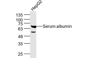 Background: Albumin is a soluble, monomeric protein which comprises about one-half of the blood serum protein. Albumin functions primarily as a carrier protein for steroids, fatty acids, and thyroid hormones and plays a role in stabilizing extracellular fluid volume. Albumin is a globular unglycosylated serum protein of molecular weight 65,000. Albumin is synthesized in the liver as preproalbumin which has an N-terminal peptide that is removed before the nascent protein is released from the rough endoplasmic reticulum. The product, proalbumin, is in turn cleaved in the Golgi vesicles to produce the secreted albumin. [provided by RefSeq, Jul 2008].