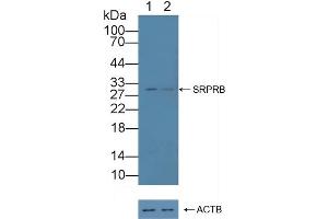 - The antibody is a rabbit polyclonal antibody raised against SRPRB. It has been selected for its ability to recognize SRPRB in immunohistochemical staining and western blotting.