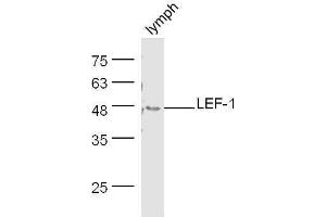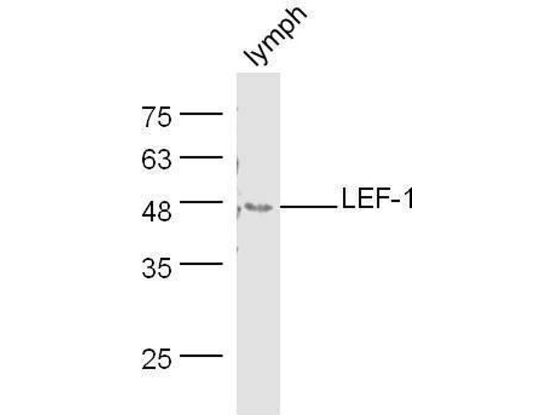 Background: Participates in the Wnt signaling pathway. Activates transcription of target genes in the presence of CTNNB1 and EP3. May play a role in hair cell differentiation and follicle morphogenesis. TLE1, TLE2, TLE3 and TLE4 repress transactivation mediated by LEF1 and CTNNB1. Regulates T-cell receptor alpha enhancer function. Binds DNA in a sequence-specific manner. PIAG antagonizes both Wnt-dependent and Wnt-independent activation by LEF1 (By similarity). Isoform 3 lacks the CTNNB1 interaction domain and may be an antagonist for Wnt signaling. Isoform 5 transcriptionally activates the fibronectin promoter, binds to and represses transcription from the E-cadherin promoter in a CTNNB1-independent manner, and is involved in reducing cellular aggregation and increasing cell migration of pancreatic cancer cells. Isoform 1 transcriptionally activates MYC and CCND1 expression and enhances proliferation of pancreatic tumor cells.