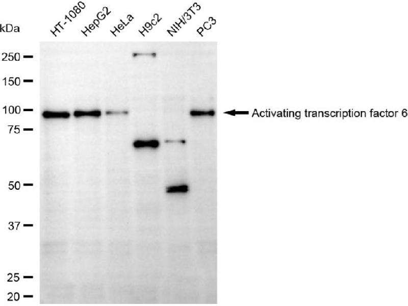 Der Kaninchen Monoklonal anti-ATF6 Antikörper wird verwendet zum Nachweis von ATF6 in Proben von Human. Er wurde validiert für WB und FACS.