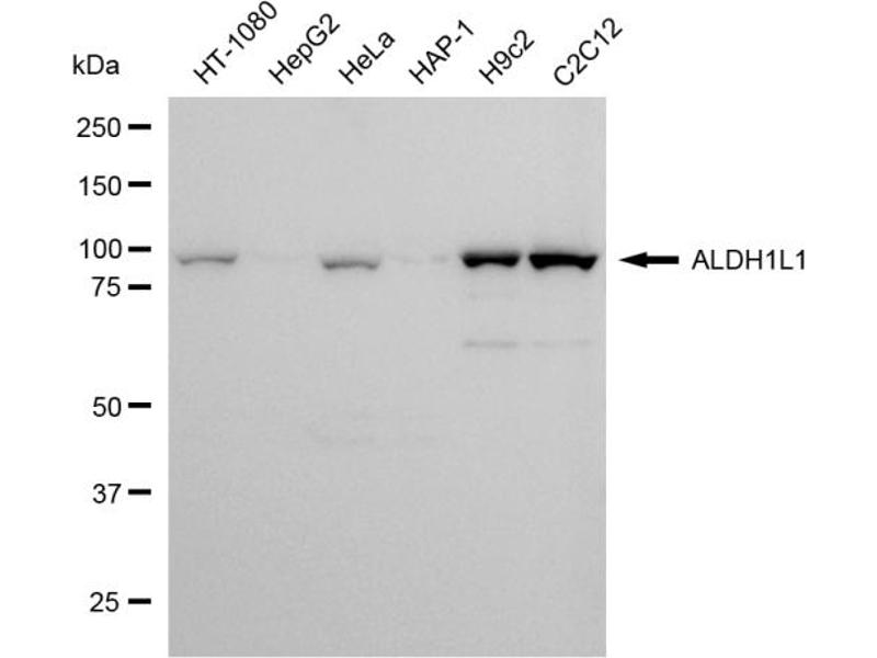 Der Maus Monoklonal Anti-ALDH1L1 Antikörper wurde für WB und FACS validiert. Er ist geeignet, ALDH1L1 in Proben von Human zu detektieren.