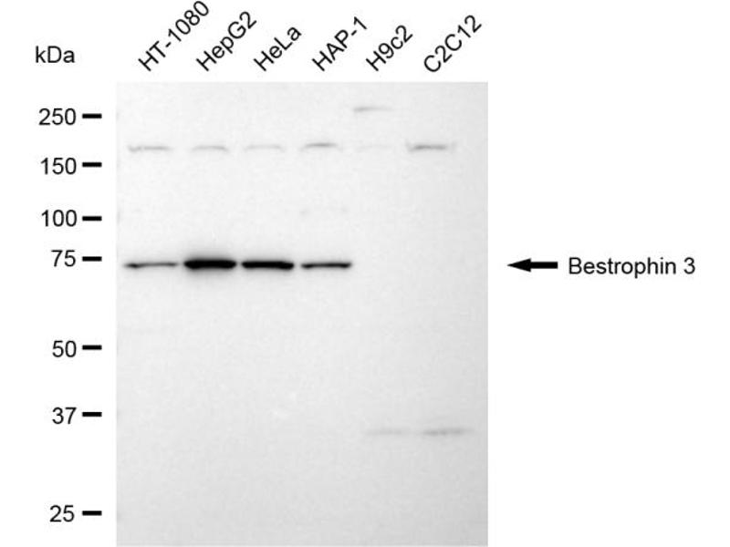 Alle Bestrophin 3 (BEST3) Antikörper anzeigenReaktivität