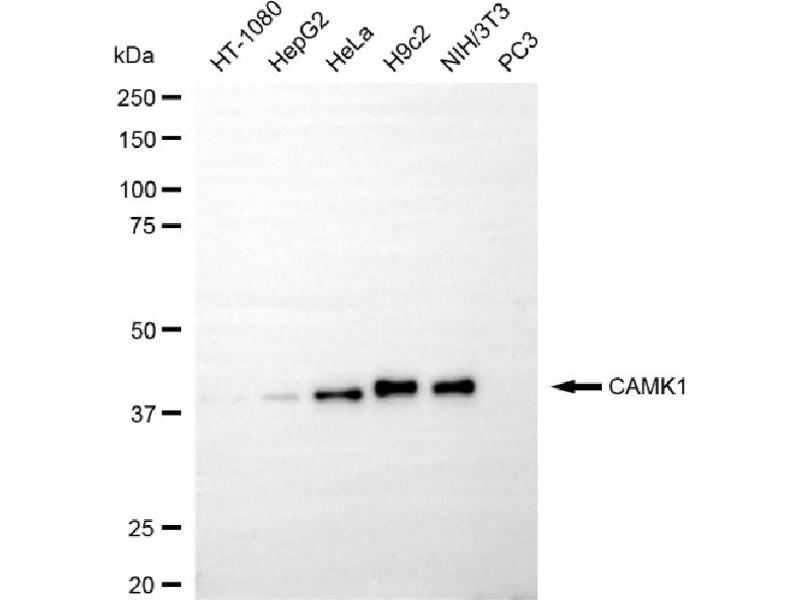 Der Kaninchen Monoklonal anti-CAMK1 Antikörper wird verwendet zum Nachweis von CAMK1 in Proben von Human. Er wurde validiert für WB und FACS.