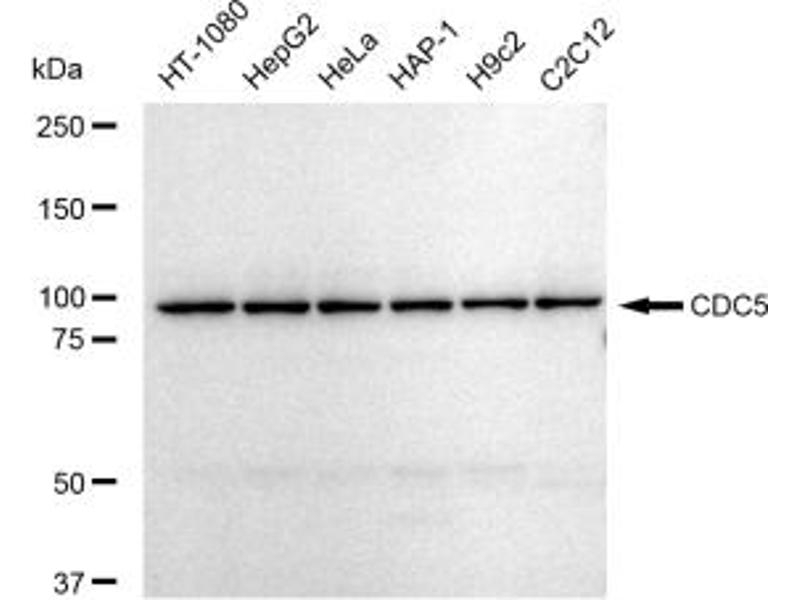Der Kaninchen Monoklonal anti-CDC5L Antikörper wird verwendet zum Nachweis von CDC5L in Proben von Human. Er wurde validiert für WB, FACS und ICC.