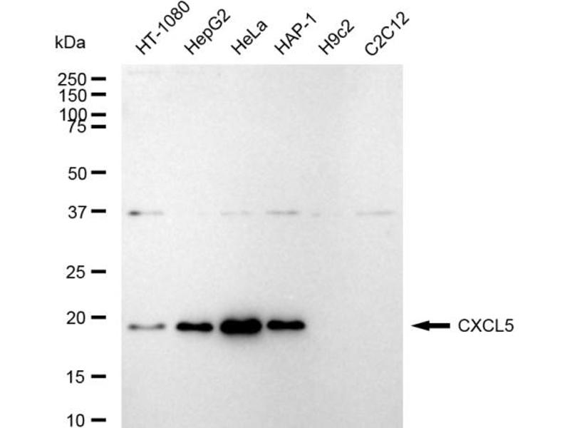 Der Kaninchen Monoklonal anti-CXCL5 Antikörper (Klon 23GB5670) (ABIN7798045) detektiert spezifisch CXCL5 in WB und FACS.
