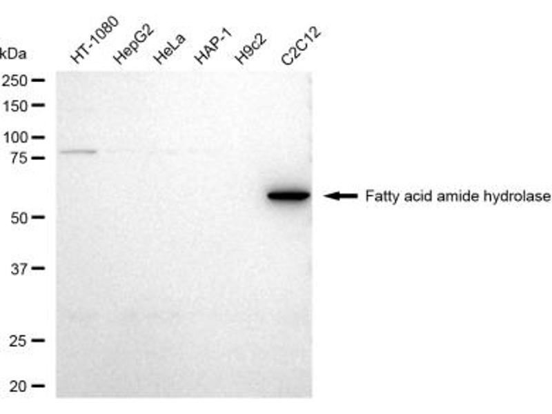 Dieser Kaninchen Monoklonal Antikörper detektiert spezifisch FAAH in WB, FACS und ICC. Es zeigt Reaktivität gegenüber Proben von Human.