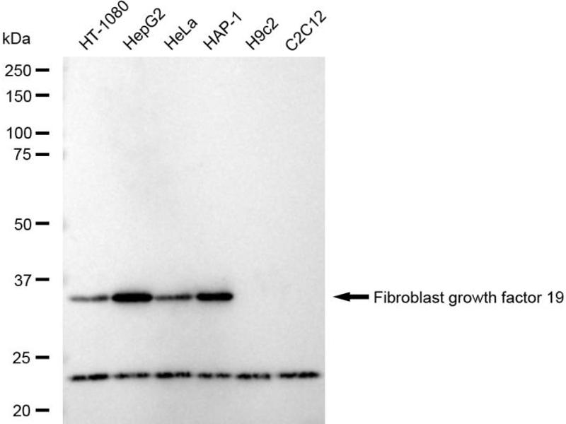 Der Kaninchen Monoklonal anti-FGF19 Antikörper (Klon 23GB5900) (ABIN7798603) detektiert spezifisch FGF19 in WB, ICC und FACS.