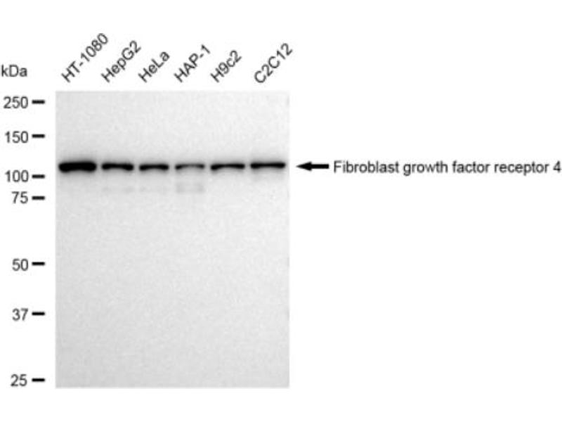 Der Kaninchen Monoklonal anti-FGFR4 Antikörper wird verwendet zum Nachweis von FGFR4 in Proben von Human. Er wurde validiert für WB und FACS.