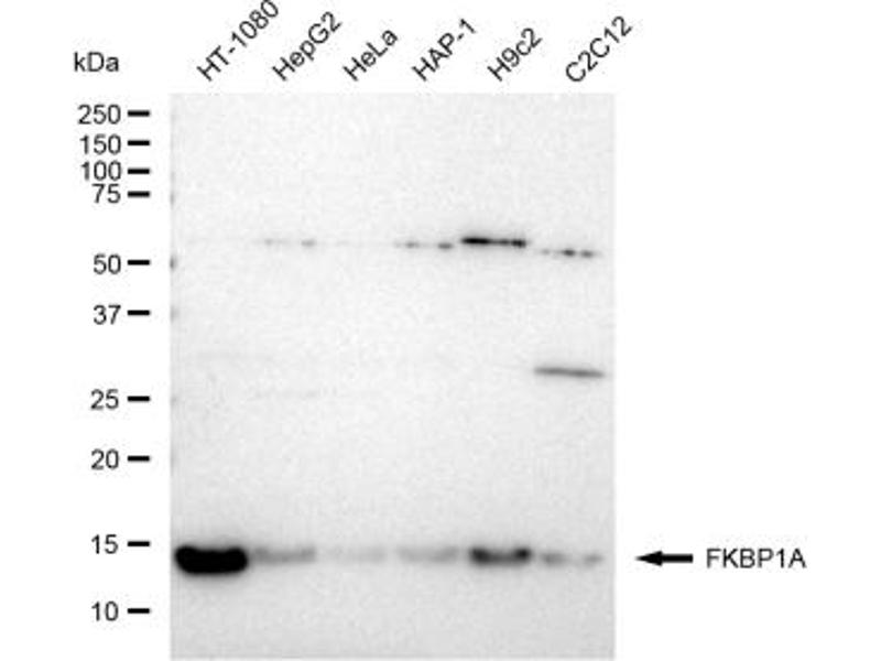 Der Kaninchen Monoklonal anti-FKBP1A Antikörper (Klon 23GB5425) (ABIN7798624) detektiert spezifisch FKBP1A in WB und FACS.