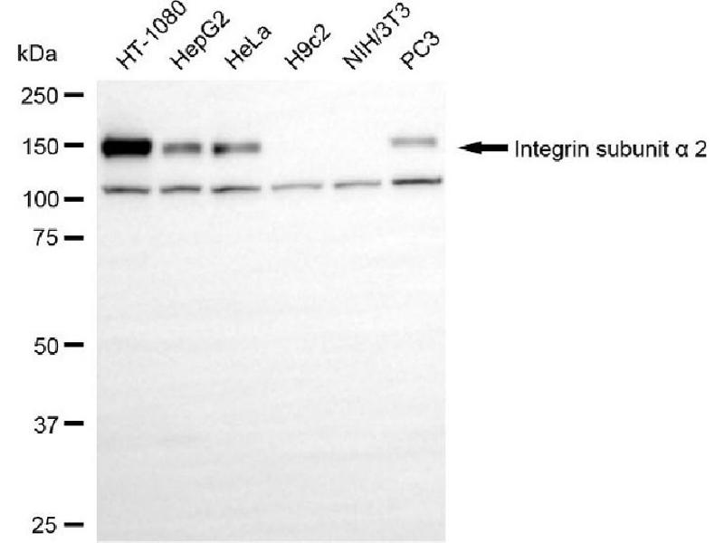 Dieser Kaninchen Monoklonal Antikörper detektiert spezifisch Integrin 2 in FACS und WB. Es zeigt Reaktivität gegenüber Proben von Human.