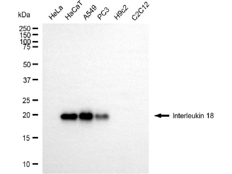Dieser Maus Monoklonal Antikörper detektiert spezifisch IL-18 in WB und FACS. Es zeigt Reaktivität gegenüber Proben von Human.