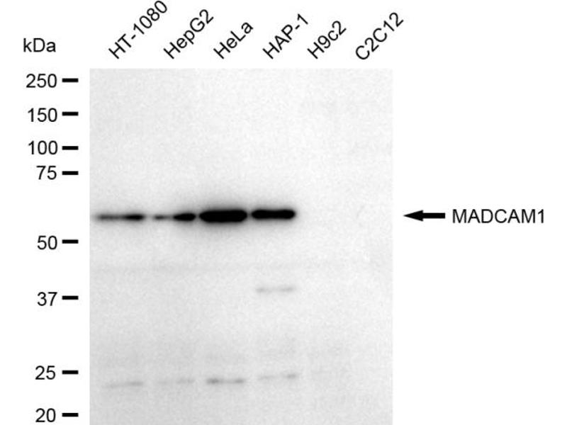 Dieser Kaninchen Monoklonal Antikörper detektiert spezifisch MADCAM1 in WB und FACS. Es zeigt Reaktivität gegenüber Proben von Human.