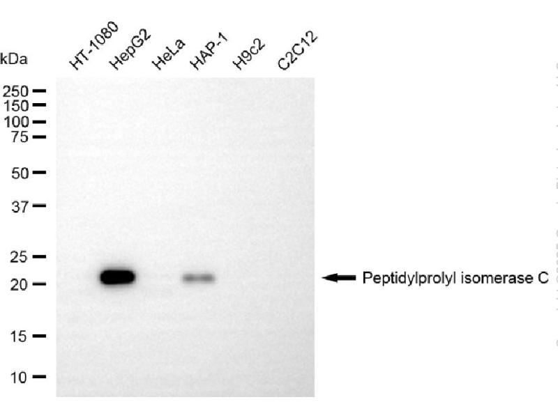 Der Kaninchen Monoklonal anti-PPIC Antikörper (Klon 25GB295) (ABIN7799767) detektiert spezifisch PPIC in WB und FACS.