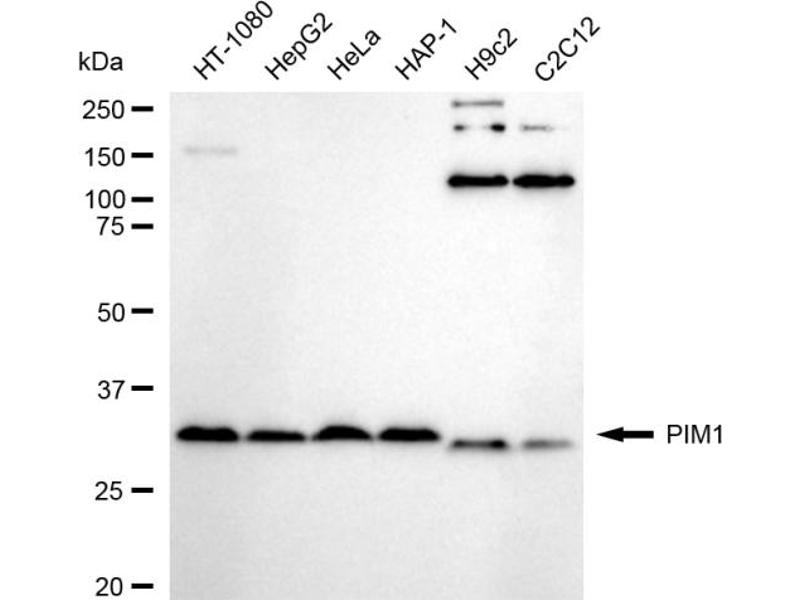 Dieser Kaninchen Monoklonal Antikörper detektiert spezifisch PIM1 in WB, ICC und FACS. Es zeigt Reaktivität gegenüber Proben von Human.