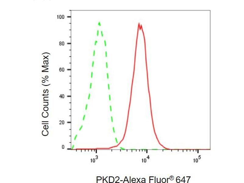 Der Maus Monoklonal anti-PKD2 Antikörper wird verwendet zum Nachweis von PKD2 in Proben von Human. Er wurde validiert für WB und FACS.