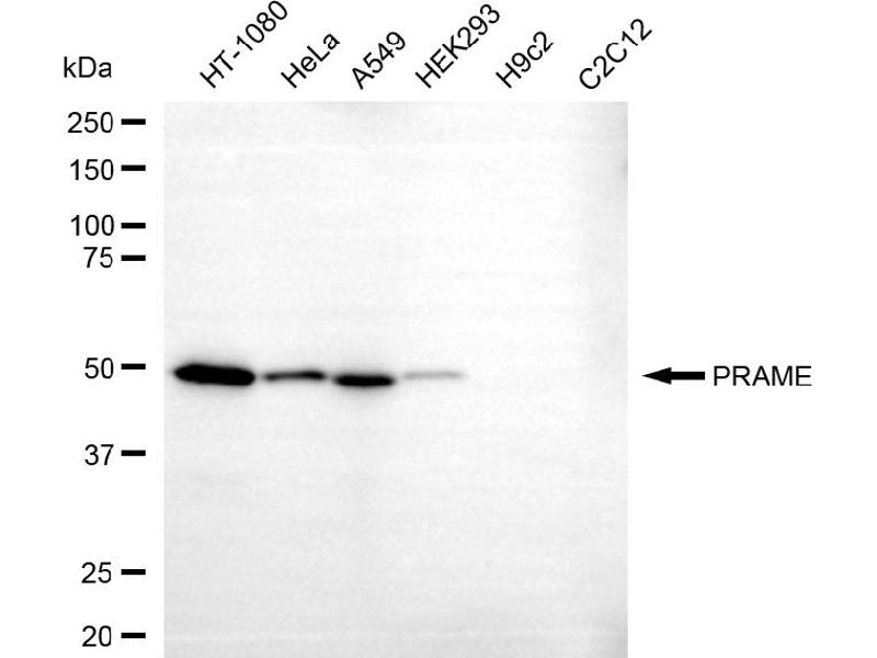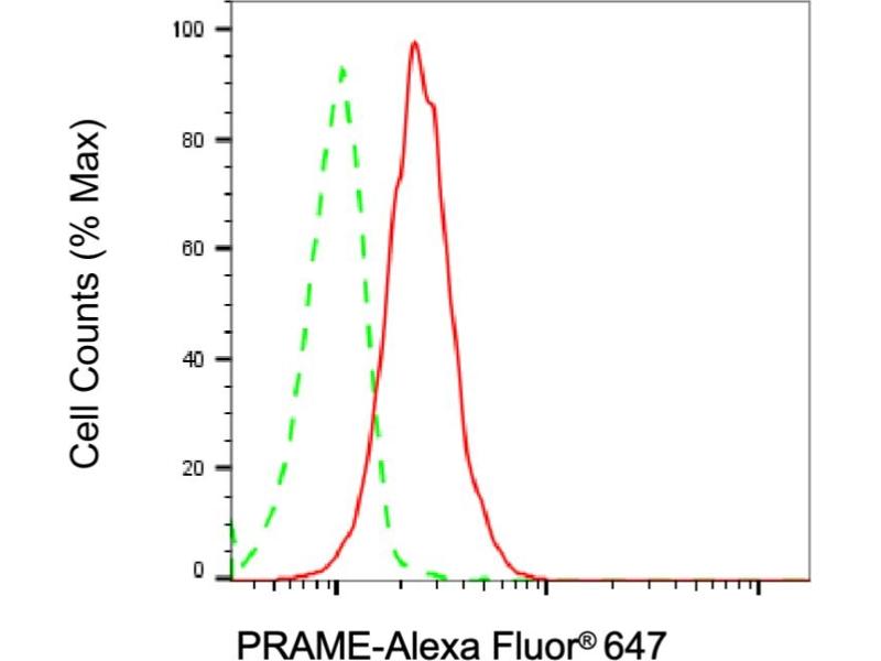 Der Kaninchen Monoklonal anti-PRAME Antikörper (Klon 25GB4420) (ABIN7799893) detektiert spezifisch PRAME in WB und FACS.