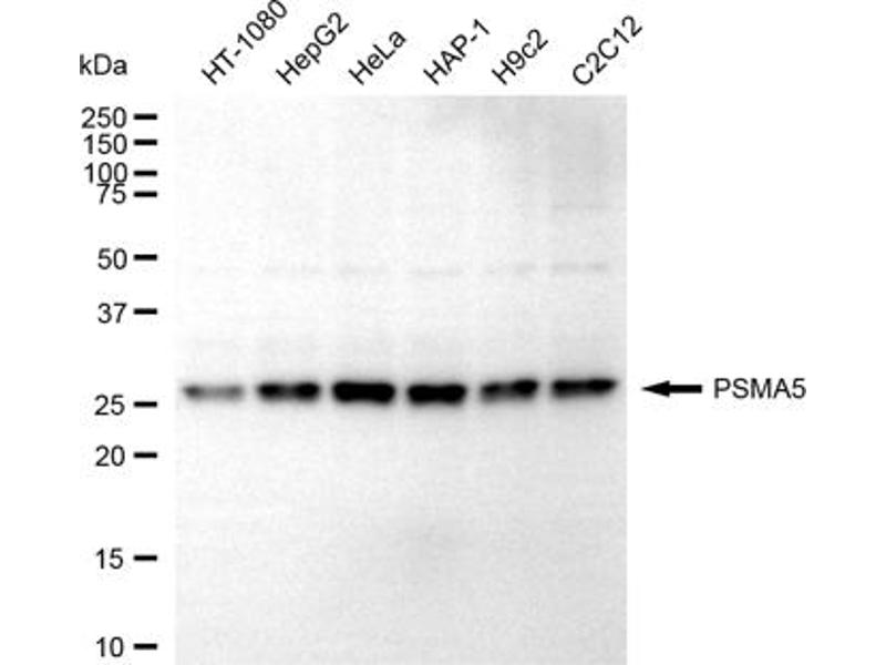 Der Maus Monoklonal Anti-PSMA5 Antikörper wurde für WB und FACS validiert. Er ist geeignet, PSMA5 in Proben von Human zu detektieren.