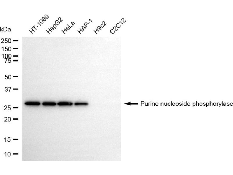 Der Kaninchen Monoklonal anti-PNP Antikörper (Klon 25GB1600) (ABIN7800067) detektiert spezifisch PNP in WB und FACS.