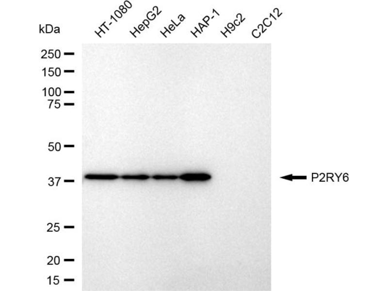 Dieser Anti-P2RY6 Antikörper ist ein Kaninchen Monoklonal Antikörper zur Detektion von P2RY6 in WB, ICC und FACS. Geeignet für Human.