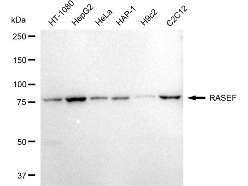 Dieser Kaninchen Monoklonal Antikörper detektiert spezifisch RASEF in WB und FACS. Es zeigt Reaktivität gegenüber Proben von Human.