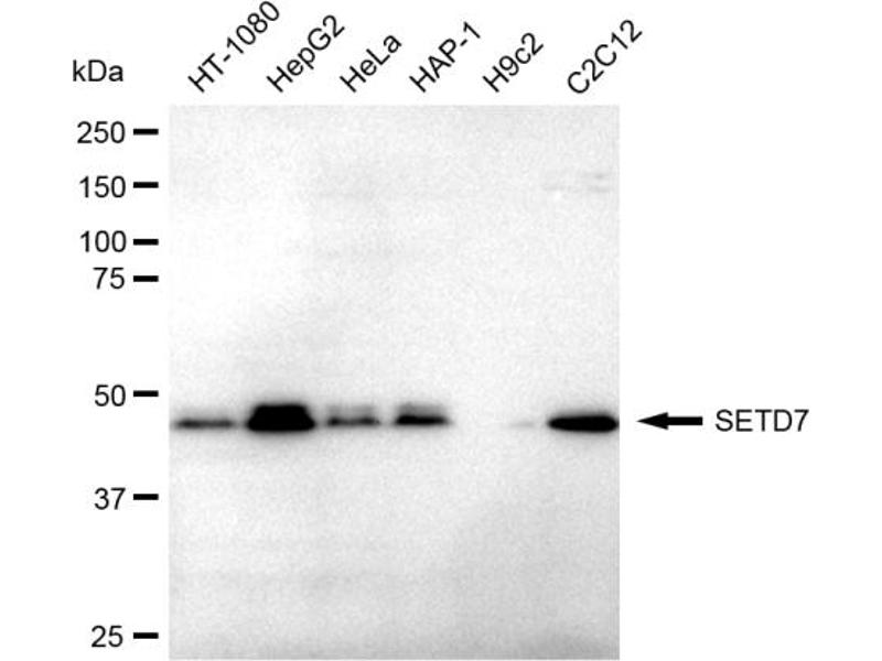 Der Kaninchen Monoklonal anti-SETD7 Antikörper wird verwendet zum Nachweis von SETD7 in Proben von Human. Er wurde validiert für WB.