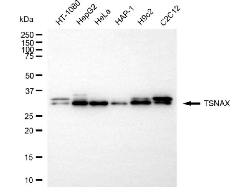Der Maus Monoklonal anti-TSNAX Antikörper wird verwendet zum Nachweis von TSNAX in Proben von Human. Er wurde validiert für WB und FACS.
