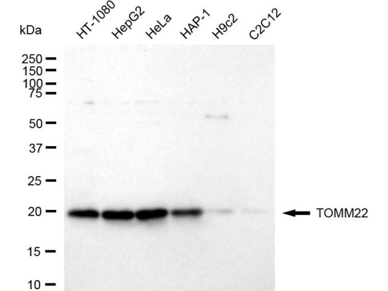 Dieser Kaninchen Monoklonal Antikörper erkennt spezifisch TOMM22 in WB und FACS. Er zeigt eine Reaktivität gegenüber Human.