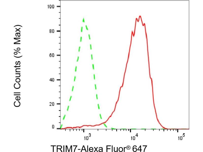 Der Maus Monoklonal anti-TRIM7 Antikörper (Klon 25GB690) (ABIN7800643) detektiert spezifisch TRIM7 in WB, IF (p) und FACS.
