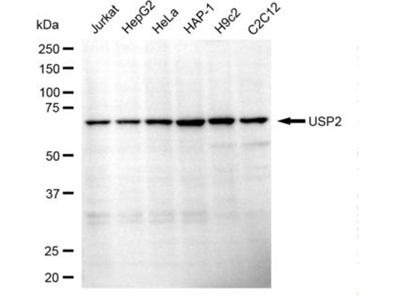 Der Maus Monoklonal anti-USP2 Antikörper wird verwendet zum Nachweis von USP2 in Proben von Human. Er wurde validiert für WB.