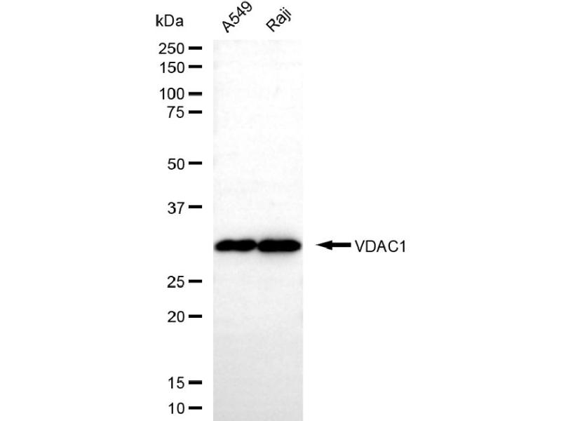 Dieser Kaninchen Monoklonal Antikörper detektiert spezifisch VDAC1 in WB. Es zeigt Reaktivität gegenüber Proben von Human.